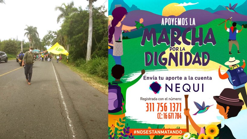 El comité de dirección de la Marcha por la Dignidad ha informado que para que las personas y organizaciones puedan enviar sus aportes económicos se ha establecido cuenta en NEQUI registrada con el número 3117561371, C.C. número 16671784, solidaridad que se les agradece altamente.