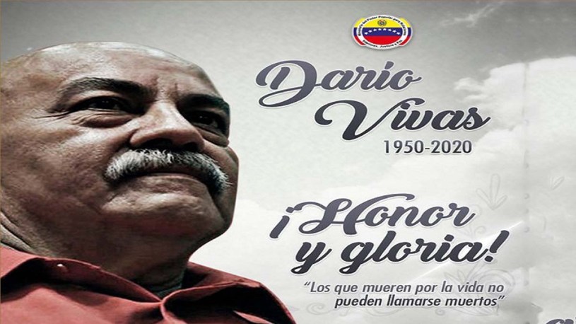 Lamentamos la partida física del Compatriota Darío Vivas, el combatiente, el dirigente de mil batallas, el escudo protector de un pueblo que seguirá movilizado por su ejemplo como el gran luchador por la vida de la patria.@NicolasMaduro @drodriven2 @JacquelinePSUV @ViceVenezuela pic.twitter.com/K5EKB17Nej