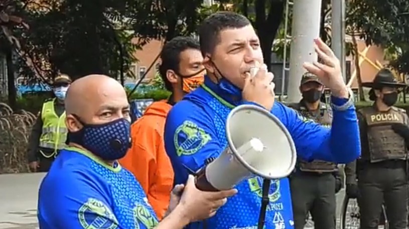 Willington Cano, gestor deportivo, megáfono en mano les pidió a los dirigentes deportivos del Instituto de Deporte y Recreación de Medellín Inder