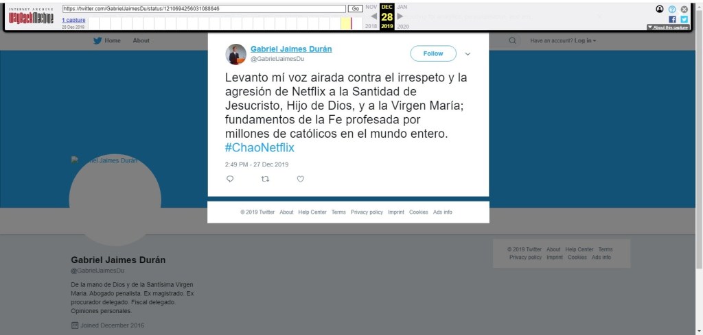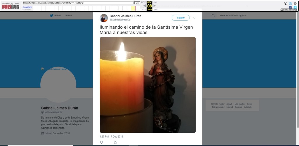 Según reportes de Wayback Machine (página web usada para ver páginas eliminadas) la última vez que el Fiscal delegado usó esta red social fue el 16 de febrero de 2020.