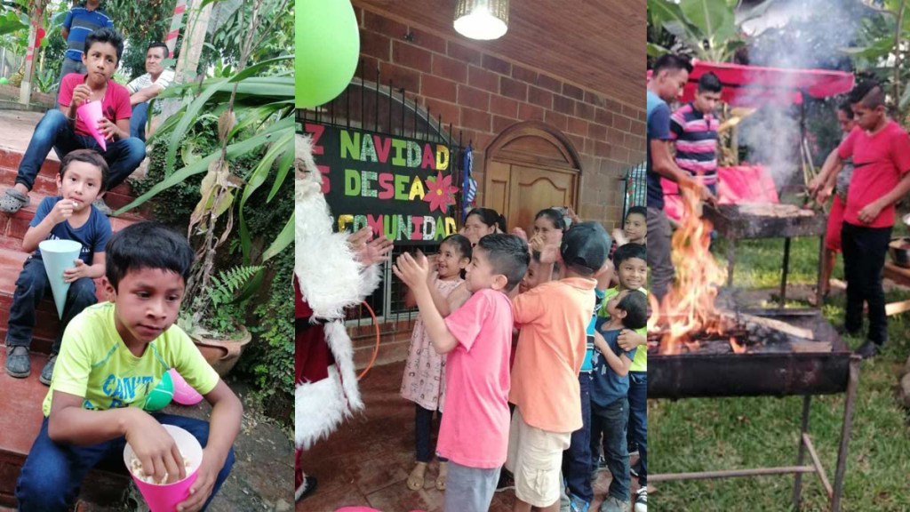 Algunos padres de familia aportaron frijoles, tortillas, carne, leña… y los jóvenes prepararon la cena. Otros, aportaron y elaboraron las bebidas… Los refrescos y desechables estuvieron completamente ausentes en la fiesta… Una de las familias aportó la “llegada de un Papa Noel cargado de pelotas” que dibujó angelicales alegrías en los rostros de niños presentes.