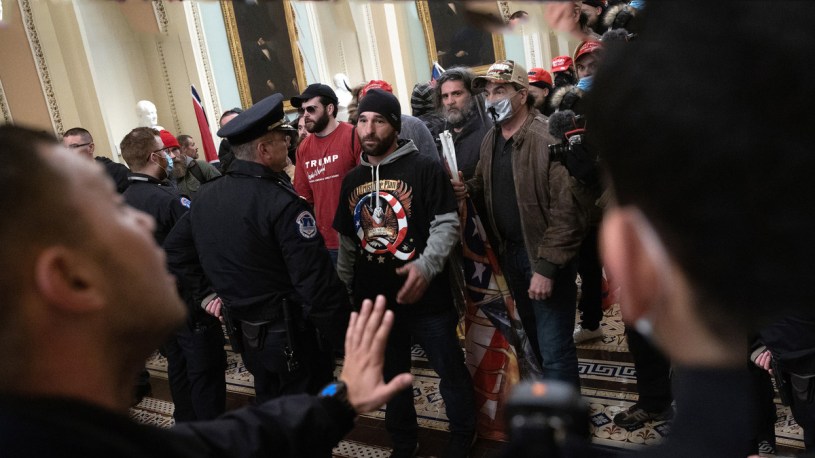 La víctima que recibió el impacto de bala, identificada como Ashli Babbitt, intentó romper una puerta protegida por barricadas y defendida desde el otro lado por policías armados. Tras el disparo, fue hospitalizada y poco después falleció.