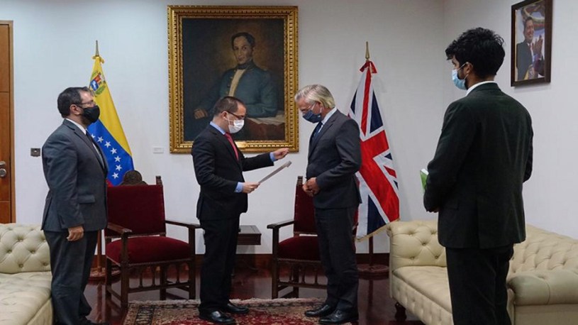 El canciller de la República Bolivariana de Venezuela, Jorge Arreaza, entregó Nota de Protesta al embajador del Reino Unido de Gran Bretaña e Irlanda del Norte, Andrew Soper, en rechazo a la política intervencionista e injerencista que ejerce ilegalmente contra el país, entre ellas el descarado financiamiento de medios privados para desestabilizar a la nación.
