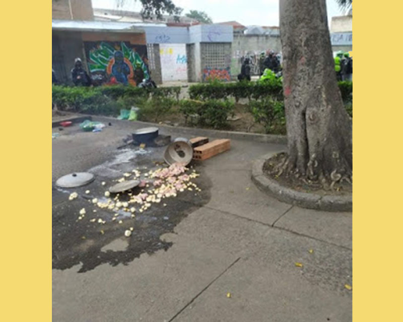 El sábado 19 de junio, el Esmad y otros componentes de la policía continuaron su hostigamiento contra los puntos de concentración juvenil y popular, y siguieron en su nueva y nefasta tarea: destruir ollas comunitarias, el alimento que preparan madres y jóvenes en lugares de protesta para el colectivo social, como ocurrió en el sector de La Luna.
