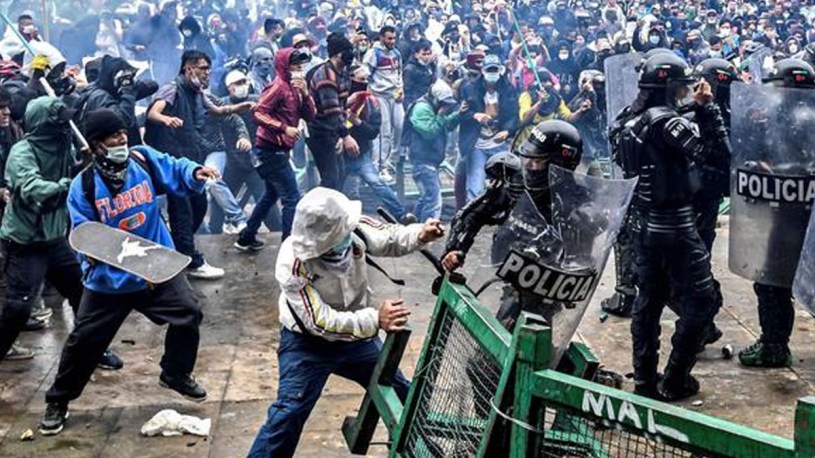 Por último, las masacres que se han venido cometiendo contra el pueblo colombiano en sus justas demandas, desde el pasado 28 de abril, cuando el presidente Duque y su ministro Diego Molano, ordenaron militarizar el país y reprimir violentamente a los pacíficos manifestantes, un hecho que viola la Constitución de la Republica y lo más grave que ha colocado a las FF.MM y de Policía a combatir a la población civil a las que les ha causado inocentes muertes de varias decenas de jóvenes, cientos de detenidos, desaparecidos y torturados, hechos muy graves, un gobierno democrático nunca enfrentaría a las Fuerzas Militares contra el pueblo. Fuerzas Militares cuya misión es la de defender la soberanía e independencia de su país y la integridad física de sus ciudadanos.