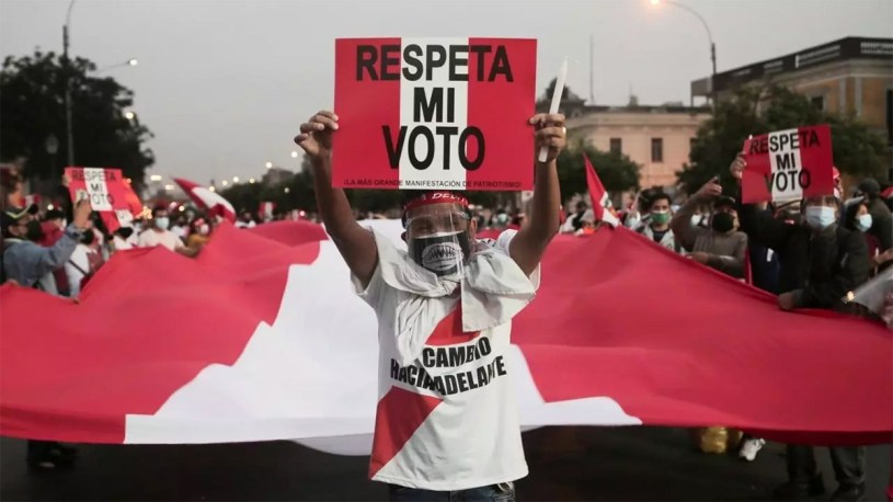 Bajo el lema “Respeta mi voto”, una vez más este tipo de protestas se han tomado especialmente las calles de Lima, la capital, como ha venido ocurriendo en las últimas semanas, mientras siguen sin conocer de forma oficial el nombre del próximo presidente o presidenta.