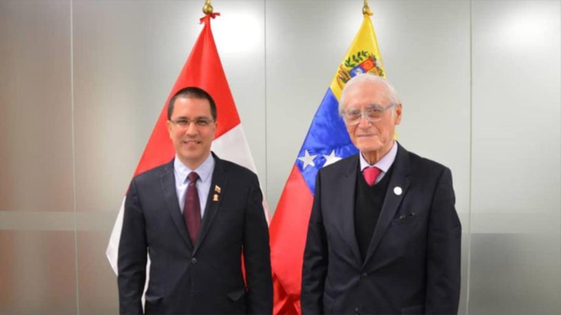 El canciller de Venezuela, Jorge Arreaza y su homólogo peruano, Héctor Béjar, se reúnen para afianzar los vínculos entre Caracas y Lima.
