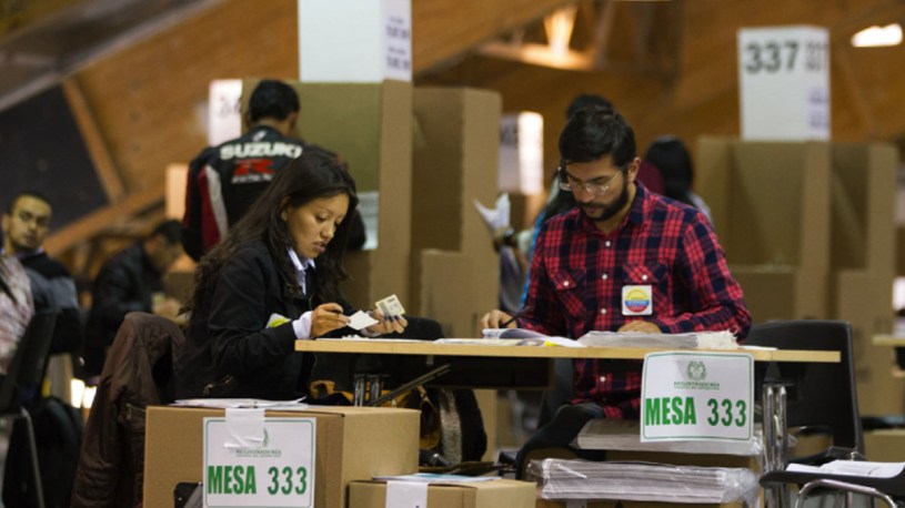 Muchos votos se pierden en el escrutinio realizado en Corferias. La lista cerrada, donde el candidato es el logo, facilita el control ciudadano de los votos. Foto Canal Trece