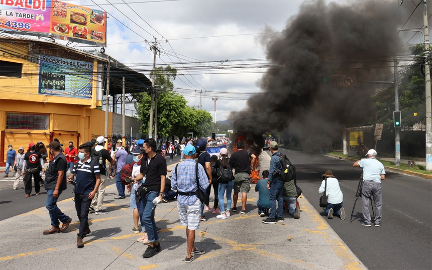 «Es importante que el gobierno sepa que los salvadoreños queremos paz, queremos democracia y queremos estado de Derecho», me dice a las 10:28 Lucía Zamora. Ya han transcurrido 43 minutos desde que los primeros manifestantes cruzaron por este cruce. Y esto sigue, sigue.