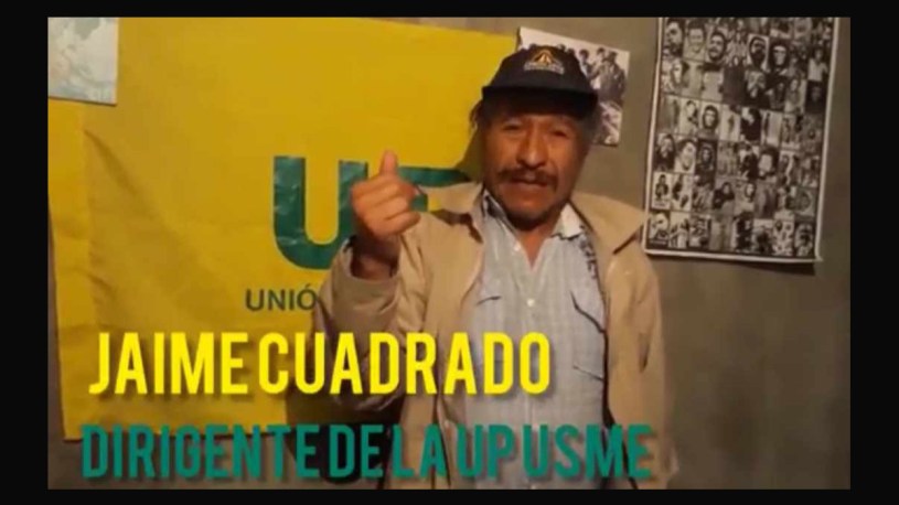 La Dirección local de la Unión Patriótica localidad 5 de Usme, rechaza enfáticamente el asesinato de nuestro dirigente Jaime Cuadrado un líder social y político quien luchaba por las comunidades más vulnerables, un defensor de los derechos del adulto mayor, hoy realizamos una exigencia a la Fiscalía General de la Nación para que esclarezca este vil asesinato de un líder social que entrego su vida a la defensa de los derechos humanos de las comunidades más vulnerables, también rechazamos los informes que indican que fue en una riña callejera en donde el compañero perdió la vida, ya que el fue un incansable luchador por la defensa de los derechos humanos, un hombre de paz, que solo luchaba contra la desigualdad social, en beneficio del pueblo.