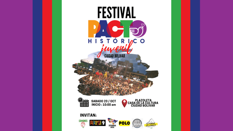 «Estaremos en el Festival Juvenil del Pacto Histórico en la plazoleta de la Casa de la Cultura de Ciudad Bolívar. , no falten les estaremos esperando. Los