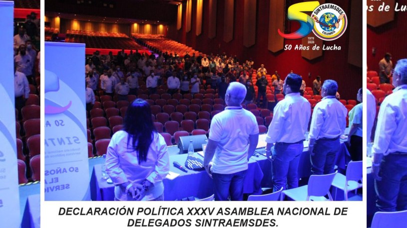 Los delegados nacionales de SINTRAEMSDES, reunidos de manera presencial en la ciudad de Santiago de Cali los días del 03 al 05 de noviembre de 2021, en la XXXV Asamblea Nacional de delegados, en la cual analizamos, debatimos y concluimos en la siguiente declaración política: