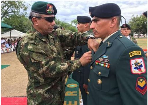 Sargento primero del Ejército en retiro Mauricio Javier Romero, mercenario colombiano que fue abatido en Haití. Aquí es condecorado en Colombia por sus grandes servicios de criminalidad contrainsurgente.