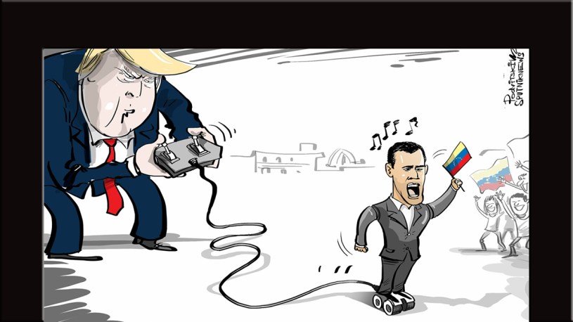 El gobierno venezolano detuvo a varios de los dirigentes de Voluntad Popular, acusándolos de terrorismo y de tenencia de armas de guerra. Esto parece haber favorecido a Guaidó, que pasó de dirigente fundador, pero secundario, a ser el portaestandarte de Voluntad Popular. En diciembre de 2018, Guaidó viajó en secreto a Washington para planificar las movilizaciones en contra de Maduro, que ocurrieron en enero de 2019. El 5 de enero, antes de regresar a Venezuela, Guaidó fue nombrado presidente de la Asamblea Nacional, y 18 días más tarde se autoproclamó “Presidente a Cargo” de Venezuela (un título que constitucionalmente no existe). Rápidamente Washington se movilizó para reconocerlo mientras presionaba a sus aliados y títeres para que hicieran lo mismo.