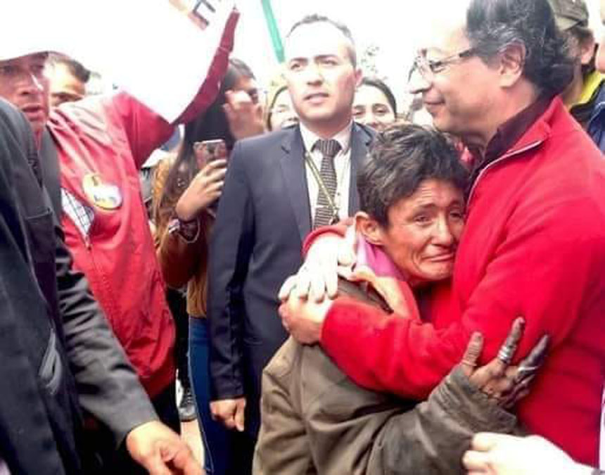 Al tiempo que el vencido lider de la extrema derecha y vocero de la antidemocracia y antipaz, es acorralado por sus propias realidades, Gustavo Petro Urrego es recibido con los brazos abiertos por Niños, jóvenes, mujeres, hombres, ancianos, a los lugares donde en otrora fuera el fortín de quien vendió una «seguridad democrática cuyo rostro real es la muerte», quien dice sin ambajes, «Si la idea de comprarle las tierras improductivas a los latifundistas para dárselas a los campesinos, que es nuestra propuesta, le dicen» CastroChavismo», ¿cómo se llama quitarle las tierras a los campesinos para dárselas a los latifundista, que es lo que han hecho tantos políticos en Colombia aliados al paramilitarismo? ¿Quiénes son los que expropiaron viviendas a través de los créditos impagables del sistema UPAC? ¿En manos de quienes están la tierras arrebatadas a los campesinos por parte de grupos paramilitares? Si soy su presidente, la reforma laboral del gobierno que se hizo elegir dos veces, antes que Santos, será derogado.