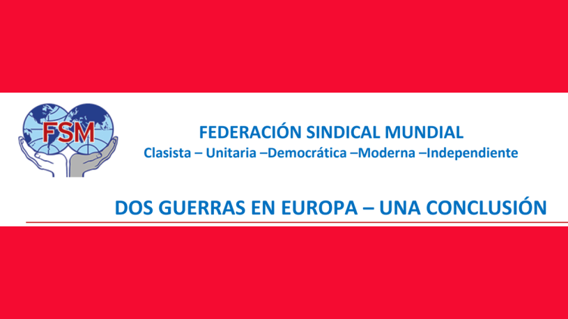 Aseguramos a los sindicatos afiliados a la FSM en el este de Ucrania que apoyamos los esfuerzos para garantizar su derecho a decidir por sí mismos su presente y su futuro. La FSM estuvo y sigue estando en contra de las prácticas fascistas del gobierno de Ucrania, que es un títere de los Estados Unidos y de la OTAN. Los pueblos de Rusia, Ucrania y de todos los países deben esforzarse diariamente por desarrollar la paz a través de relaciones de amistad y solidaridad. Nuestra lucha común contra las contradicciones imperialistas debe y puede detener las guerras imperialistas.