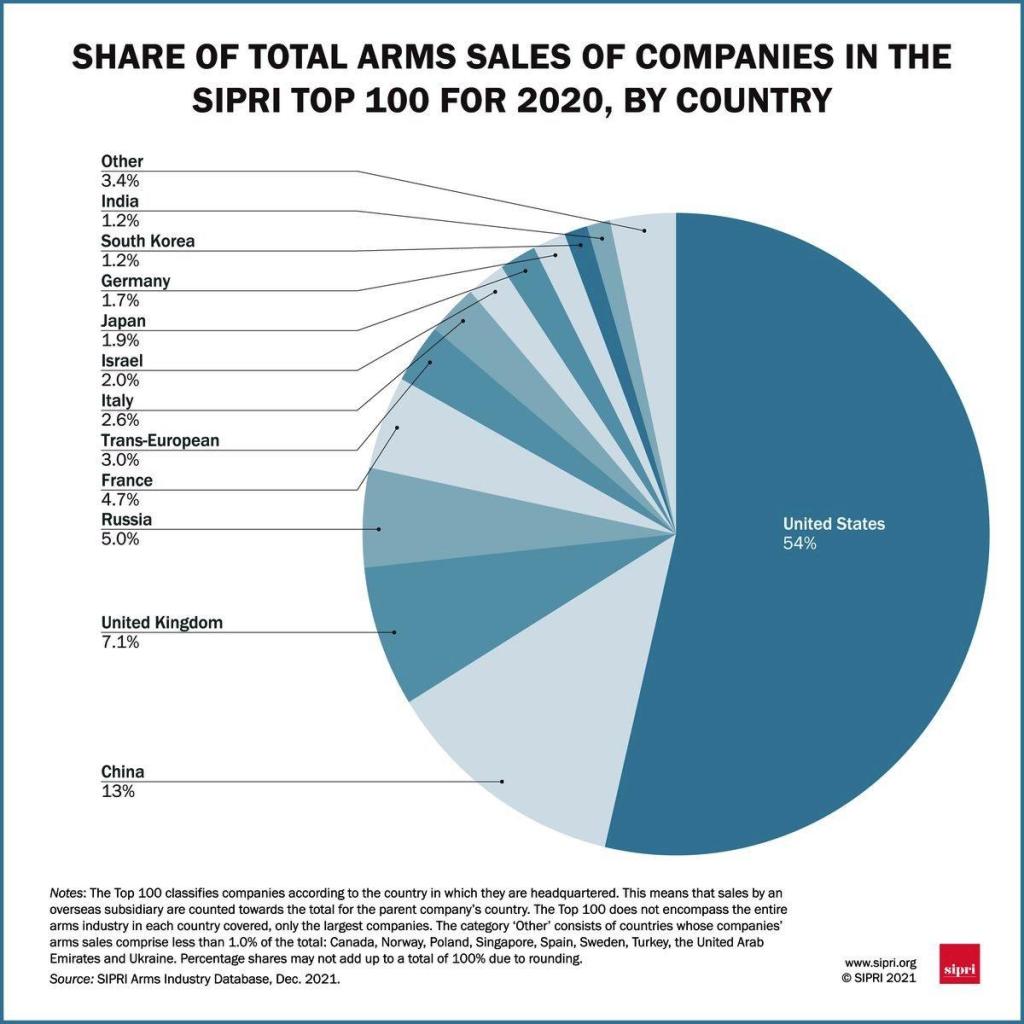 Estados Unidos dispuso de dos guerras mundiales para relanzar su economía. Luego de la Primera Guerra Mundial, suplantó al Reino Unido como primera potencia global. En 1945 se instituyó como el máximo responsable de definir las reglas de las Naciones Unidas, el Banco Mundial y el Fondo Monetario Internacional. Durante el gobierno de Donald Trump, los funcionarios del Departamento de Estado insistieron en la necesidad de un mayor gasto en armas por parte de los países europeos, ante los retos planteados por la entente sino-rusa. La suma del gasto en armamento de Estados Unidos y la Unión Europea expresa el 60% del expendio global. Solo los integrantes europeos de la OTAN desembolsan, en conjunto, 200.000 millones de euros en armamento, cuatro veces lo que emplea Rusia. En 2021 el gasto militar global batió todos los récords al superar por primera vez los dos billones de dólares. El incremento en 2021 –respecto a 2020– fue del 6%. Estados Unidos exhibe un tercio de todo el estipendio global.