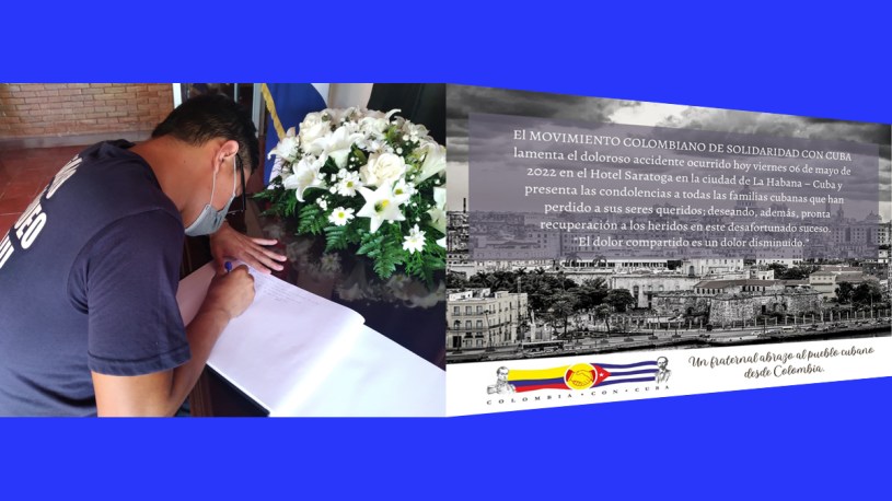 El lunes 9 de mayo se realizó en Bogotá en la Embajada de Cuba en Colombia, el acto de la firma del libro de condolencias en memoria del destacado dirigente de la revolución y ex Canciller de la República de Cuba, Ricardo Alarcón de Quesada; fallecido recientemente y de expresión de solidaridad con el Gobierno de Cuba y su pueblo, frente al lamentable accidente en el Hotel Saratoga en la Habana (Cuba).