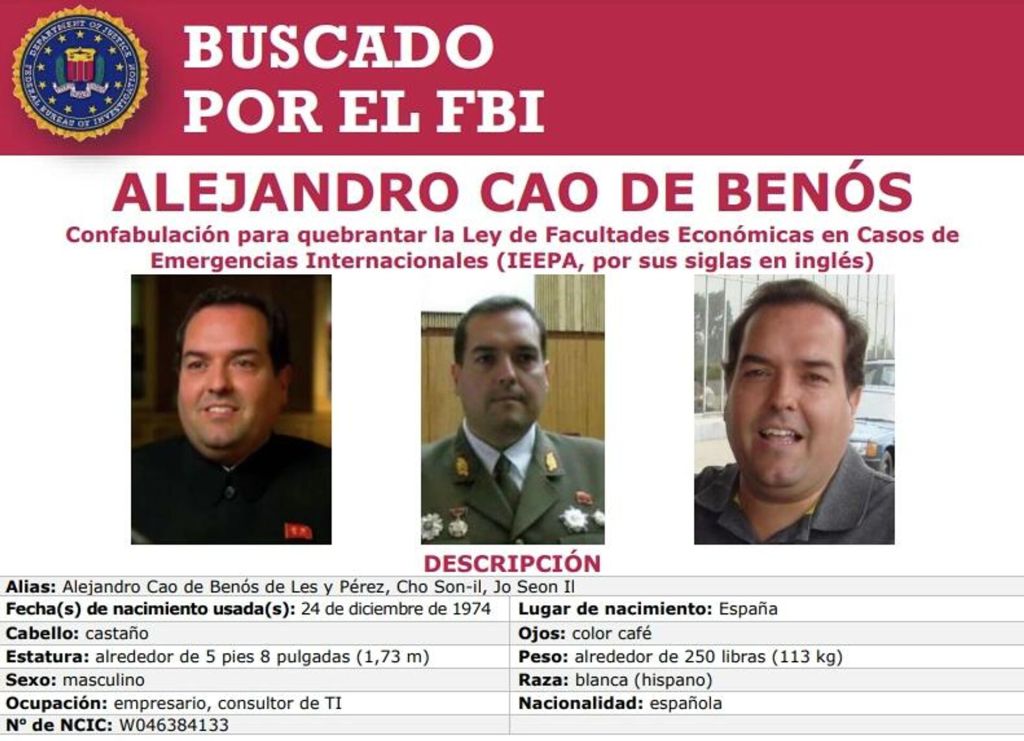 El político español Alejandro Cao de Benós es buscado por el Gobierno de Estados Unidos por haber conspirado a favor de Pionyang y haber ayudado al régimen de Kim Jong-un a evadir algunas sanciones económicas impuestas desde Washington.