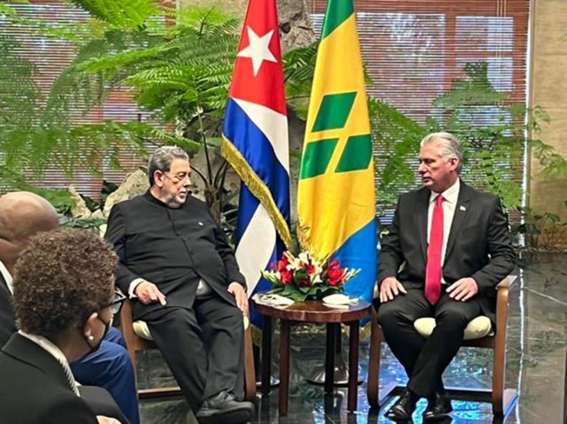 De acuerdo con una nota de la Presidencia de la República, Díaz-Canel agradeció el apoyo del gobierno vicentino a la lucha de Cuba contra el bloqueo impuesto estadounidense y reconoció la digna y valiente posición que ha asumido Gonsalves, de no asistencia a la IX Cumbre de las Américas ante la maniobra de convocar una reunión hemisférica con exclusiones.