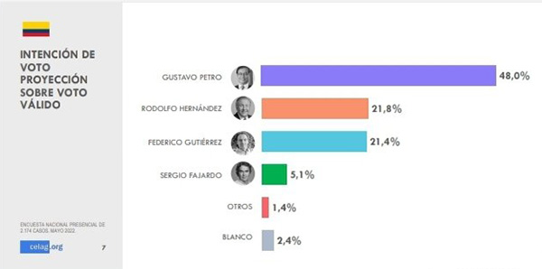 Todas las encuestas señalan que Gustavo Petro ganará ampliamente las elecciones del domingo, esto no lo pone en duda nadie. La incógnita es si conseguirá el porcentaje que lo haga Presidente en primera vuelta, o si será necesaria la segunda vuelta. Las encuestas han venido ubicando a Federico Gutiérrez en la segunda posición, pero existe la real posibilidad de que en el último momento, sea superado por Rodolfo Hernández.