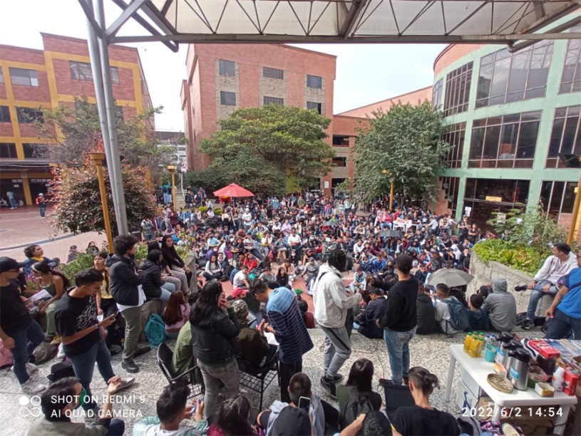 «En la asamblea universitaria se exigen sedes con condiciones dignas para recibir el derecho a la educación, en el aspecto de la infraestructura, el pago oportuno a docentes, discusión y ajuste de la reforma universitaria , rechazan la aspiración presidencial del candidato de la burguesía Rodolfo Hernández, y se invita a los estudiantes a organizarse y seguir construyendo una universidad al alcance de nuestros sueños», indica el informativo estudiantil.