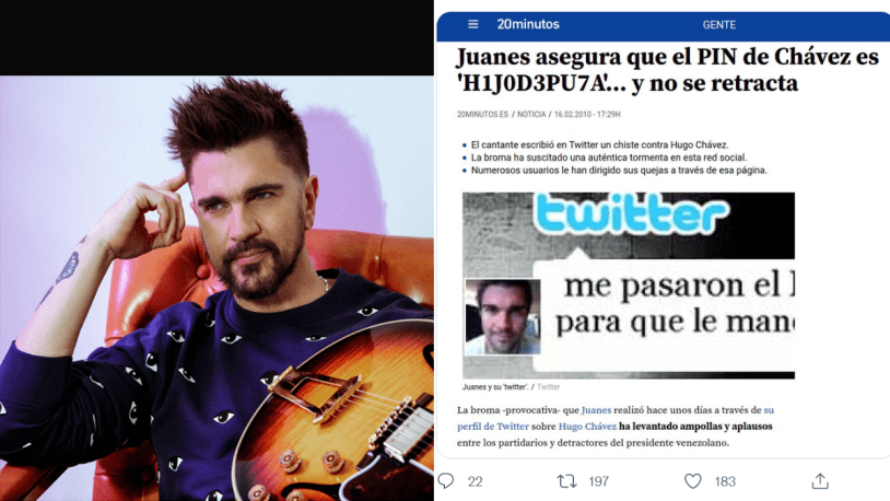 Por esas mismas fechas, Juanes celebro que algunos países aliados a Estados Unidos reconocieran como presidente interino al golpista Juan Guaido, quien se autoproclamo en una plaza del este de Caracas. “Ver a todo el mundo unido con el nuevo presidente interino, ver como la gente marcha en las calles sin miedo, que la policía la deja marchar, si es importante y emocionante”, señalo, refirió Semana.
