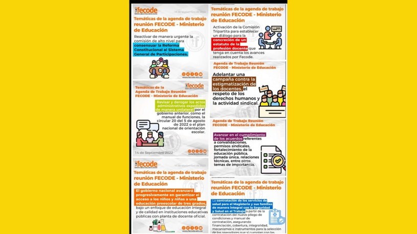 El Comité Ejecutivo y el Presidente de Fecode, Carlos Rivas, y el Ministro de Educación, Alejandro Gaviria, presentan el balance de la reunión sostenida el día de hoy, 14 de septiembre.