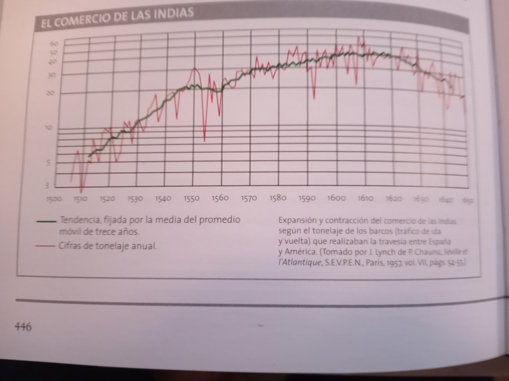 El siguiente cuadro aportado por el historiador inglés John Lynch en su libro “Monarquía e Imperio El reinado de Carlos V. El País 2007 España” en la página 446, donde muestra el tonelaje del comercio de la indias, ida y vuelta a España durante un siglo y medio, de 1500 a 1650, aporta una visión de largo plazo sobre la importancia y magnitud de la acumulación de riquezas en el Imperio español.