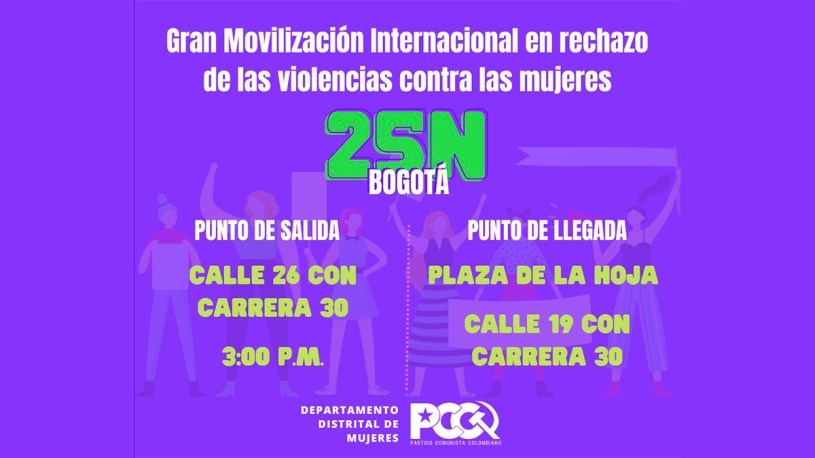 Desde el Departamento Distrital de Mujeres del PCC les extendemos la invitación a participar de la gran movilización internacional en rechazo de las violencias contra las mujeres en Bogotá el viernes 25 de noviembre de 2022.