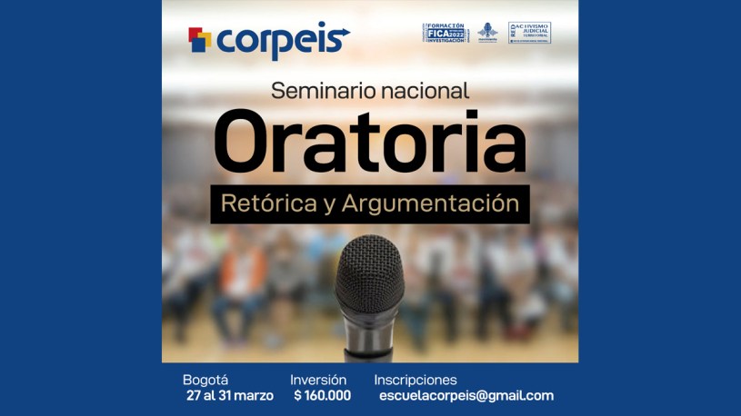 La Corporación para el Desarrollo de la Educación y la Investigación Social Corpeis anuncia que ya están abiertas las inscripciones para el Seminario Nacional de Oratoria, Retórica y Argumentación, el cual se llevará a cabo en la ciudad de Bogotá entre los días 27 al 31 de Marzo.