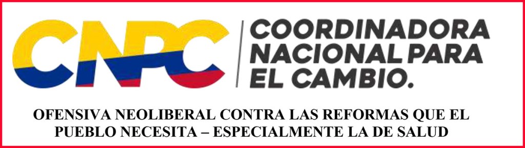 OFENSIVA NEOLIBERAL CONTRA LAS REFORMAS QUE EL PUEBLO NECESITA – SPECIALMENTE LA DE SALUD LA COORDINADORA NACIONAL PARA EL CAMBIO, anteriormente COMITÉ NACIONAL DE PARO, conformada por movimientos sociales, estudiantiles, sindicales, campesinos, étnicos, académicos, de género, políticos, entre otros, quienes lideramos conjuntamente con otras formas organizativas de carácter popular, el levantamiento social y paro nacional, del cual conmemoramos 2 años, el próximo 28 de abril y días subsiguientes;paro que suspendimos acudiendo a otros espacios de la democracia, razón por la cual presentamos más de 10 proyectos de ley al congreso de la república, sin encontrar eco en un parlamento profundamente enemigo de los derechos populares y cooptado por los intereses del gran capital; votamos, mayoritariamente, por el programa del actual gobierno liderado por GUSTAVO PETRO y FRANCIA MÁRQUEZ, por encontrar que los 104 puntos de nuestro pliego de peticiones, presentado al gobierno anterior, sin que hayan sido negociado, se encontraban contenidos en el programa “COLOMBIA POTENCIA MUNDIAL DE LA VIDA” y en particular, en lo sanitario, “SALUD PARA LA VIDA NO PARA EL NEGOCIO”.