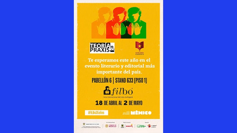 Hacemos la invitación a visitar el stand de la Editorial Teoría y Praxis en la Feria del Libro de Bogotá, ubicado en el primer piso, Pabellón 6, stand 633 de Corferias para que adquieran las novedades que se presentarán como cada año, especialmente del pensamiento progresista latinoamericano y mundial.