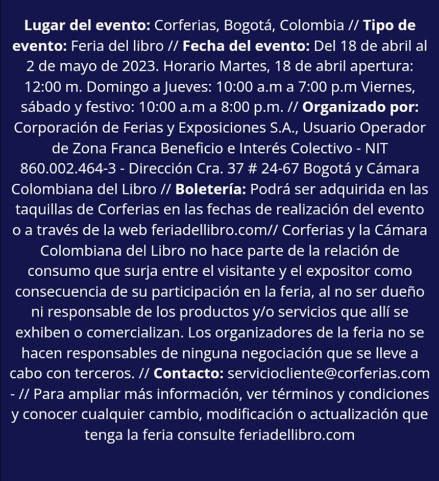 Desde el martes 18 de abril abre sus puertas en la capital colombiana la Feria Internacional del Libro, versión 2023. El importante certamen va hasta el 2 de mayo y tiene como país invitado de honor a México.
