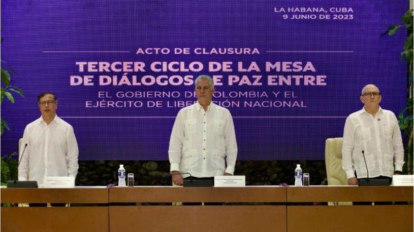 En presencia de los presidente de Colombia, Gustavo Petro, y Cuba, Miguel Díaz-Canel, las delegaciones del Gobierno colombiano y el Ejército de Liberación Nacional (ELN) que toman parte en los diálogos de paz concluyeron este viernes en La Habana el tercer ciclo de negociaciones y firmaron los Acuerdos de Cuba.