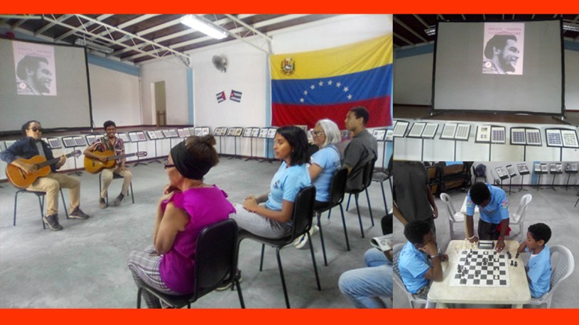 Mientras se desarrollaba el conversatorio los niños y jóvenes jugaban ajedrez, unos de los pasatiempos favoritos del Che’ debido a su estrategia de planificación y concentración.