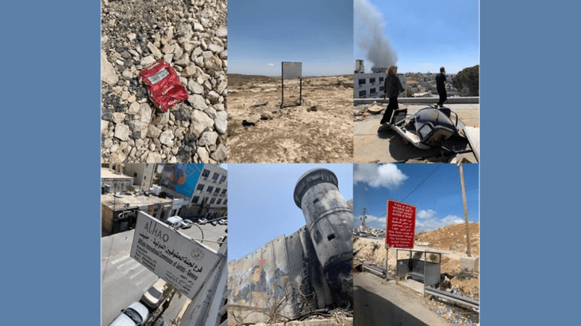 La UE quiere quedar bien con dios y con el diablo: mantener relaciones amistosas con «una democracia vibrante en el corazón de Oriente Próximo», como ha reiterado recientemente Ursula Von der Leyen, y mantener la pretensión de proteger las libertades civiles y los derechos humanos. ¿Y qué mejor manera de dejar huella que en el propio entorno construido? En el resto del territorio ocupado, una de cada dos construcciones está adornada con una gran pegatina de la Unión Europea. La palabra más peligrosa en inglés, dice un beduino en nuestra visita a las colinas de Jericó, es «help». Israel corta el suministro de agua a la comunidad beduina y la UE les construye una bañera: esa es la sátira de la ayuda humanitaria. Un silencio incómodo llena el autobús de regreso a Ramala.