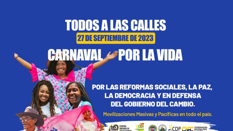 ¡Por la defensa de la vida, el programa de gobierno y las reformas sociales Laboral, Pensional, la Salud y de Educación todos a las calles el 27 de septiembre!