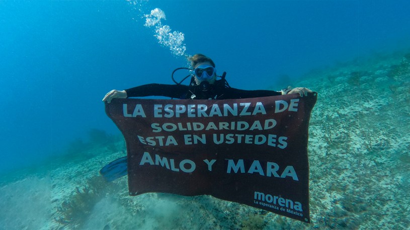 Comenta que el impacto del sargazo y los desagües de los hoteles en el medio ambiente es muy grave y que –en recorridos de monitoreo para observar el daño- han visto un incremento alarmante de ejemplares de arrefice coralino que se han blanqueado, lo que se conoce como “el Síndrome Blanco”. La regidora Laura Beristain me comentó también que ella buceando a treinta metros de profundidad pudo corroborar la desintegración de arrecifes blanqueados; ahí en lo profundo pudo desplegar una manta para pedir el apoyo a las autoridades como se puede ver en las imágenes.
