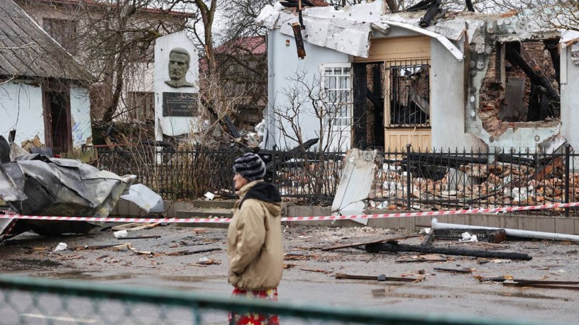 Las imágenes que circulan en la Red muestran que el museo quedó totalmente destruido, y que en el lugar solo quedaron una placa conmemorativa y una estatua destrozada de Shujévich, comandante del Ejército Insurgente Ucraniano.