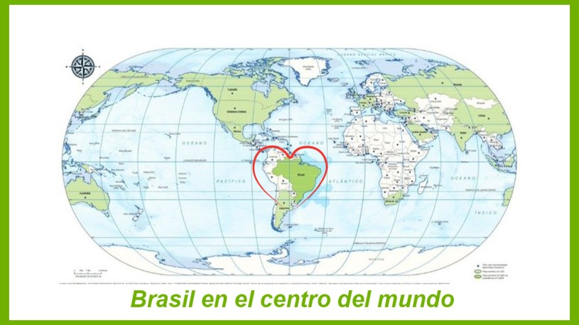 El Instituto Brasileño de Geografía y Estadística (IBGE) lanzó esta semana un mapamundi donde Brasil aparece en el centro del mundo, según una publicación hecha el jueves por el presidente de la agencia, Marcio Pochmann, quien había presentado la nueva representación cartográfica al presidente Luiz Inácio Lula da Silva ya en marzo.