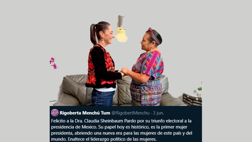 Con Rigoberta Menchú, Premio Nobel de la Paz, “hablamos del gran símbolo que representa que lleguemos a la presidencia para todas las mujeres de América, y de mi compromiso por seguir trabajando por el bienestar de los pueblos indígenas”.