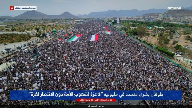 Bajo el lema “No hay orgullo para la nación sin la victoria en Gaza”, millones de personas salieron a las calles y se reunieron en la Plaza Sabin en Sanaa, así como en otras plazas en todo el país árabe.
