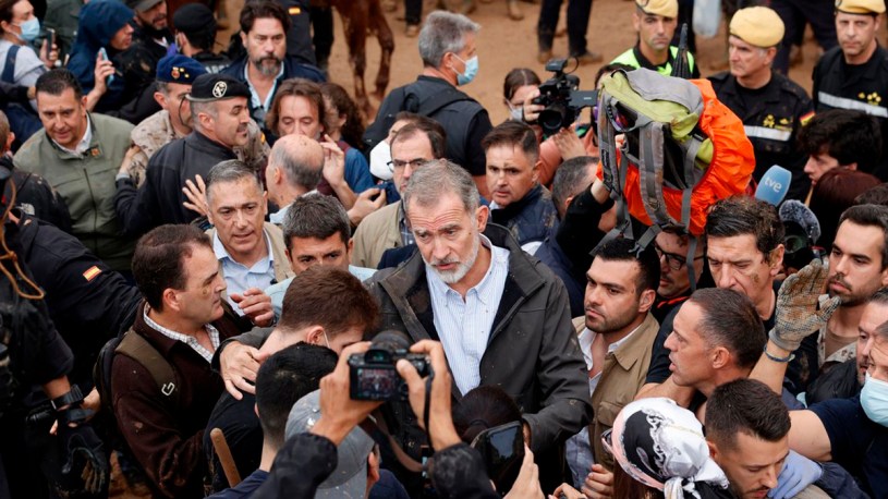 Finalmente, días después, el 3 de noviembre, tras un despliegue policial como no había habido hasta ese momento, se produjo la visita de los reyes de España a las zonas devastadas. La respuesta del pueblo fue en gran medida lanzarles barro mientras gritaban consignas de repulsa por la actitud del Estado ante la catástrofe, incluido ese «paseo» real que, además, había paralizado las tareas de limpieza y rescate. También fue agredido el presidente del Gobierno, Pedro Sánchez, durante su visita, y del mismo modo, «Mazón dimisión» se convirtió en el grito que ha acompañado al presidente de la Generalitat Valenciana.