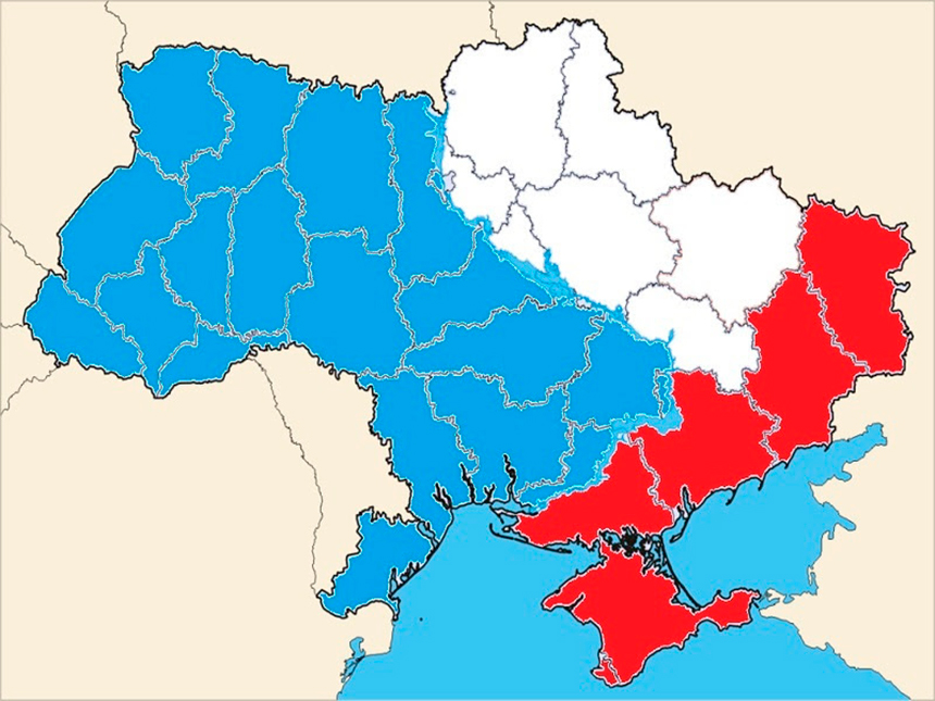 Todo el armamento pesado tendría que ser retirado hacia el oeste como parte de una enorme zona desmilitarizada (DMZ), aunque también existe la posibilidad de que esta región de “Transdniéper” también reciba autonomía política o al menos autonomía cultural para proteger los derechos de los rusos étnicos y de quienes hablan ese idioma. Este escenario se presentó por primera vez aquí en marzo y podría adoptar la forma que se muestra a continuación, con la parte occidental del país en azul posiblemente albergando tropas de la OTAN como parte del acuerdo que se describirá a continuación: