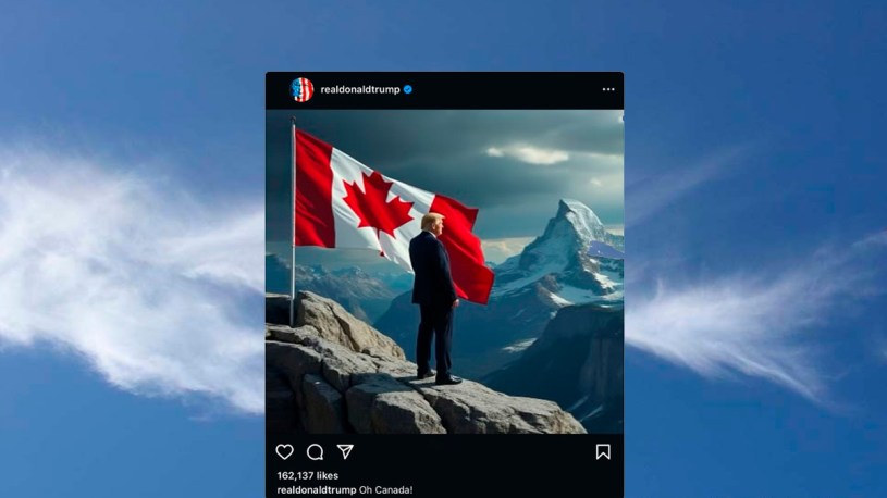 Ahora, el mandatario electo estadounidense publicó en Truth Social una foto generada por inteligencia artificial de él conquistando las montañas de Canadá. «¡Oh, Canadá!«, escribió Trump.