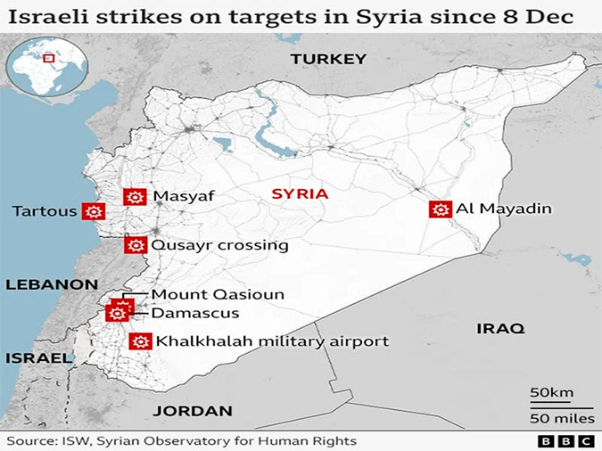 Israel llevó a cabo una de las mayores operaciones de ataque de su historia, tras lanzar casi 500 ataques en la Siria post-Assad, que acaba de ser tomada por un grupo de “rebeldes” liderados por el grupo terrorista Hayat Tahrir al-Sham (HTS), anteriormente conocido como Al Qaeda en Siria, respaldado por Turquía. El objetivo es crear una “ zona de defensa estéril ”, para lo cual las FDI atravesaron la zona de amortiguación de los Altos del Golán y avanzaron a lo largo de la frontera sirio-libanesa, terminando a pocos kilómetros de Damasco.