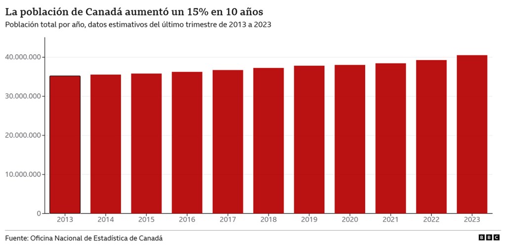 Esta reducción detendrá el crecimiento de la población en Canadá durante los próximos dos años, dijo Trudeau, lo que dará tiempo a las provincias para reforzar sus programas sanitarios y sus esquemas de vivienda.