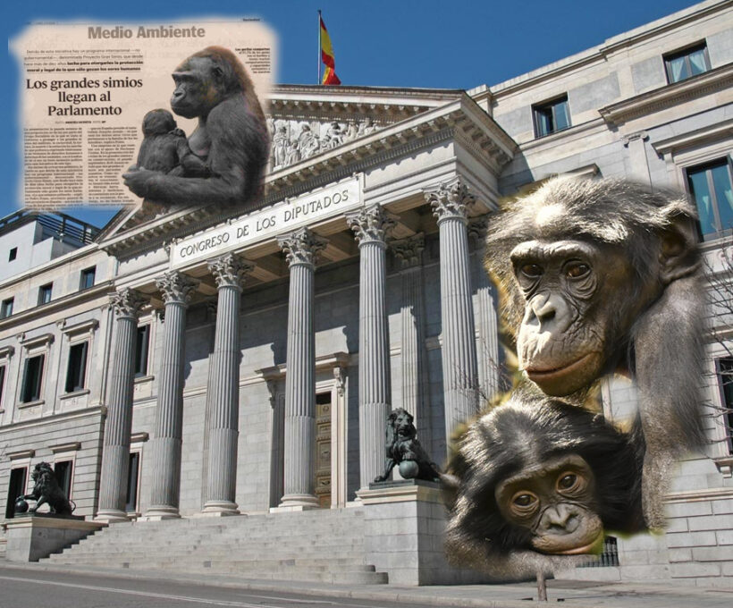 La Ley 7/2023 de 28 de marzo sobre la protección de los derechos y el bienestar de los animales y que entraría en vigor a los seis meses de su publicación en septiembre de 2023, se convirtió en un hito para la defensa de los derechos de los animales en España. Es cierto que algunas propuestas que estaban incluidas en la Ley como la prohibición de los espectáculos circenses con cetáceos o que en la ley estuviera incluidos los perros de caza, fueron rechazadas por los partidos políticos. Dentro de esta ley, se incluyó la disposición adicional cuarta sobre la Ley de grandes simios que no solo daba un paso adelante en la protección animal, sino que marcaba un compromiso histórico: el gobierno español debía legislar, en un plazo tres meses, una Ley de Grandes Simios. Este mandato, aprobado tanto en el Senado como en el Congreso, recibió un amplio respaldo político, social e incluso mediático, consolidando la idea de que los grandes simios son más que seres sintientes; son individuos con capacidades cognitivas extraordinarias que comparten con nosotros rasgos fundamentales que definen la personalidad humana, según lo establecido por el bioético Joseph Fletcher.