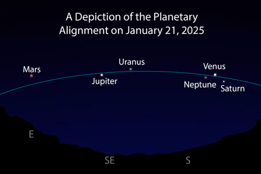 No necesitarás binoculares para penetrar en la oscuridad del espacio y divisar varios planetas formando un gran «desfile» a finales de enero. Será, técnicamente hablando, una gran alineación planetaria en la que seis planetas se alinearán entre las arboledas de estrellas.
